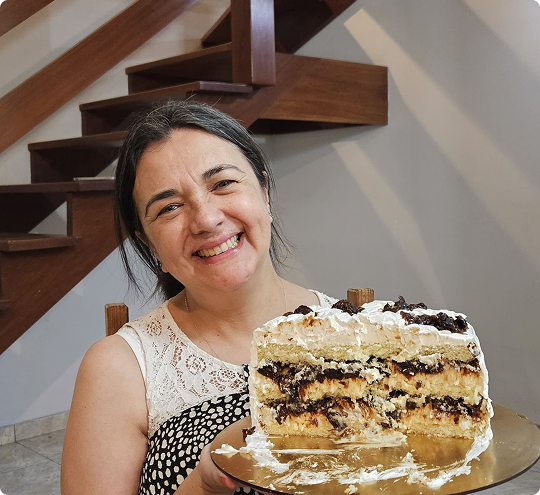 Nara Glacira Baptista começou a fazer doces e tortas para familiares e amigos. O número de pedidos foram aumentando e atualmente ela é a chef responsável pela criação e montagens de bolos, tortas e docinhos